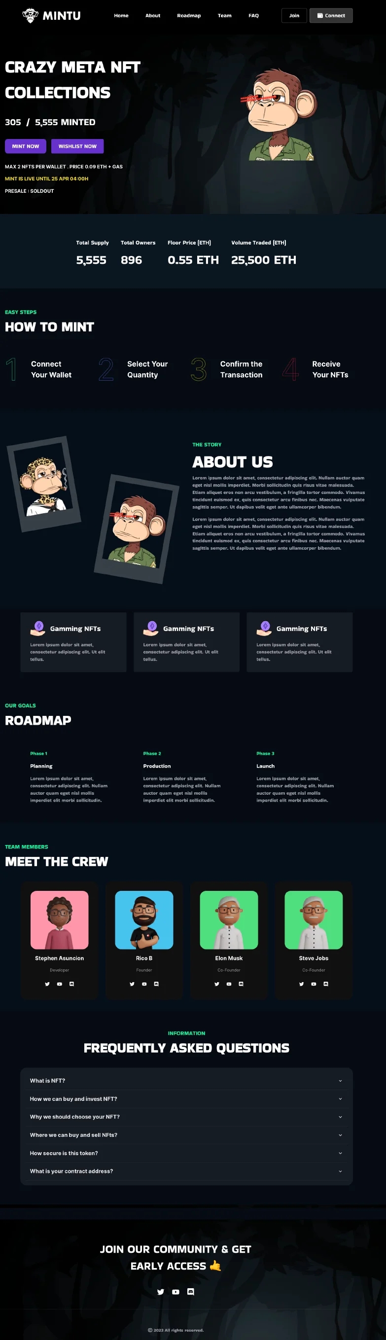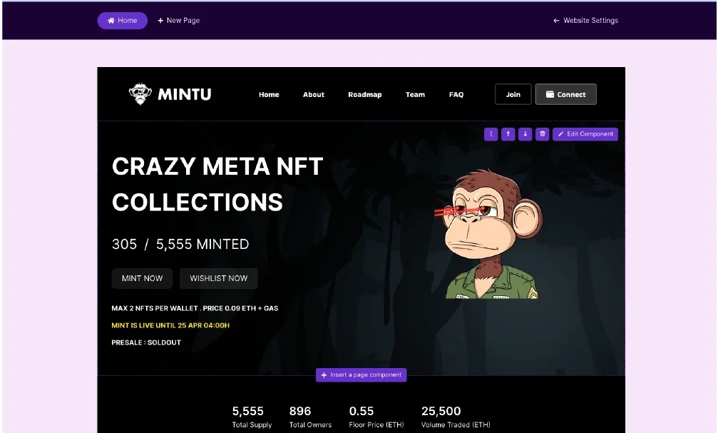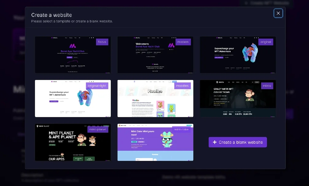 You can create a Minting website in 1 minute by choosing a template and editing the content.
